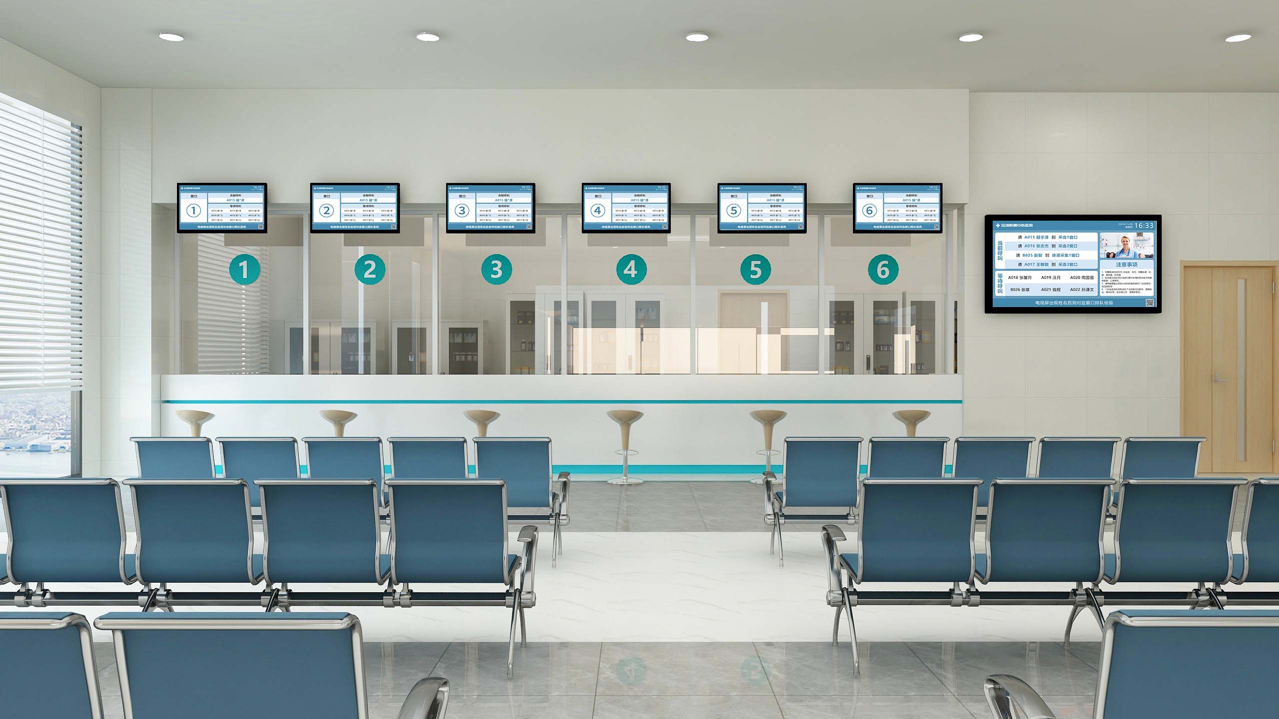 系统应用于医院中药房、西药房取药窗口,可自动读取患者信息,当配药医师配药完成后,点击呼叫按钮或扫描取药单上的条码,系统会自动叫号,并将叫号信息显示在窗口叫号显示屏上,可实现批量叫号功能。